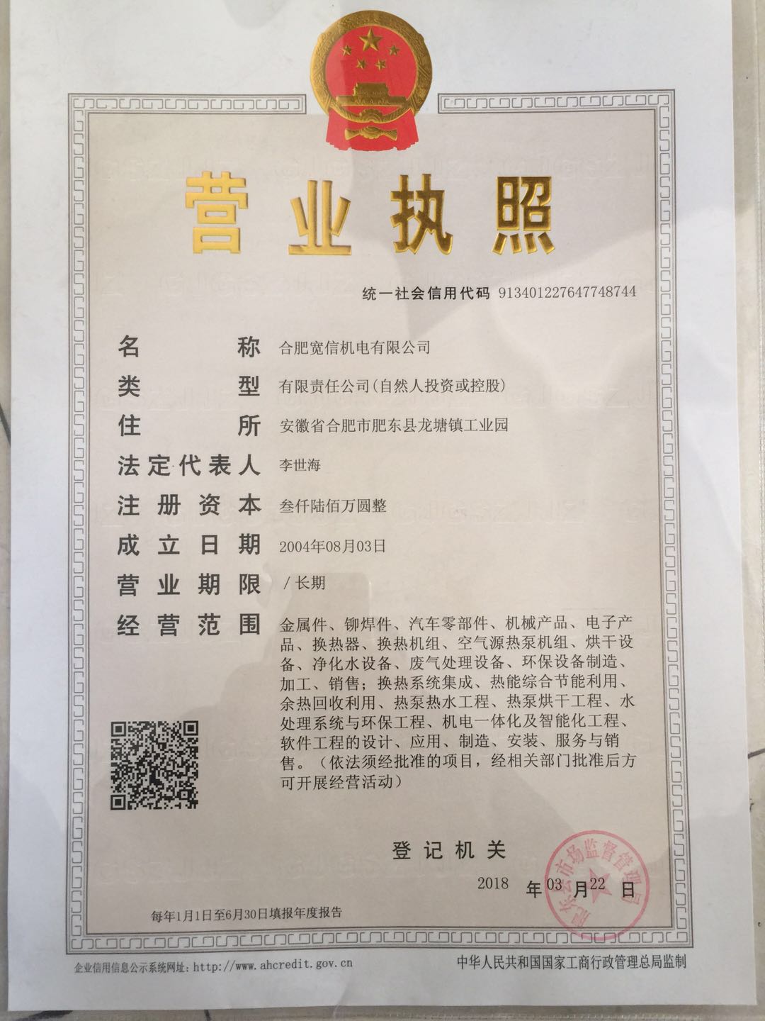合肥寬信機(jī)電有限公司成立于2002年,是從事熱交換器、余熱回收、煙氣廢氣熱回收與凈化處理、熱泵機(jī)組及其應(yīng)用、汽車零部件研發(fā)、制造、銷售與工程服務(wù)為一體的高新技術(shù)企業(yè)。公司位于合肥上海產(chǎn)業(yè)園,占地60畝,擁有40000多平方米標(biāo)準(zhǔn)化工業(yè)廠房,10000多平方米研發(fā)、營銷、服務(wù)綜合樓,各類生產(chǎn)、檢測、實(shí)驗(yàn)設(shè)備300多臺(tái)套,科研技術(shù)開發(fā)團(tuán)隊(duì)50多人,自主知識(shí)產(chǎn)權(quán)及國家專利和研究成果60多項(xiàng),在熱交換器、余熱回收、熱泵機(jī)組應(yīng)用、廢氣凈化處理方面都具有較強(qiáng)的實(shí)力。